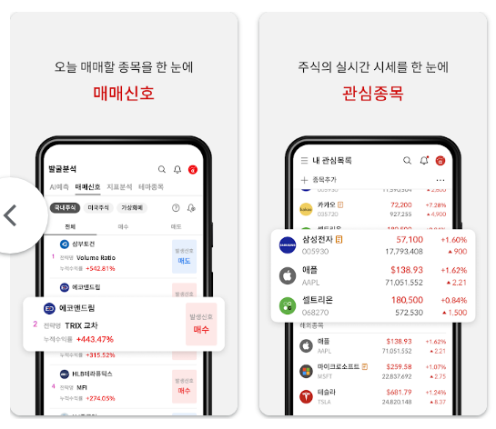 - 발굴 기능을 통한 종목 탐색: 테마주, 특징 종목, 예측 자료 등을 통해 시장에서 주목받는 종목을 빠르게 찾는 데 활용할 수 있습니다.