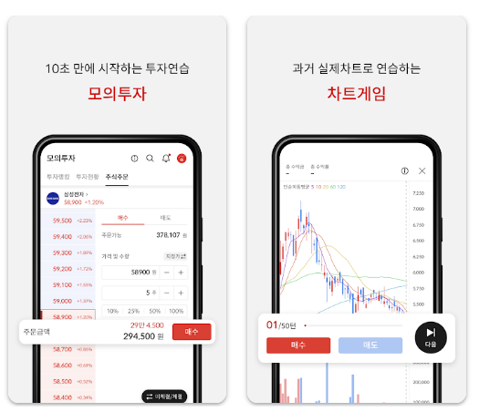 예, 실제 투자 전에 연습할 수 있는 모의투자 기능을 제공합니다. 주식 매수·매도 방법을 미리 익힐 수 있으며 실전과 유사한 화면 구성을 통해 투자 흐름을 연습하는 데 도움이 됩니다. 처음 주식을 접하는 사용자도 부담 없이 활용할 수 있습니다.